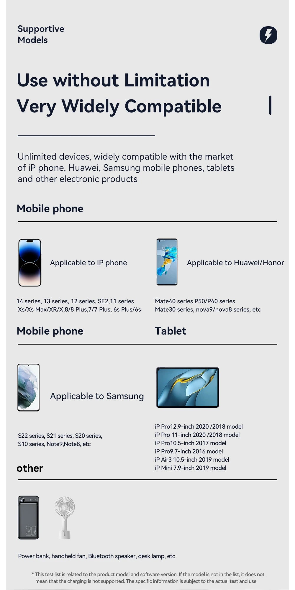Applied Fast Charge Protocols: USB PD,Qualcomm Quick Charge,Samsung Adaptive Fast Charge,Huawei FCP