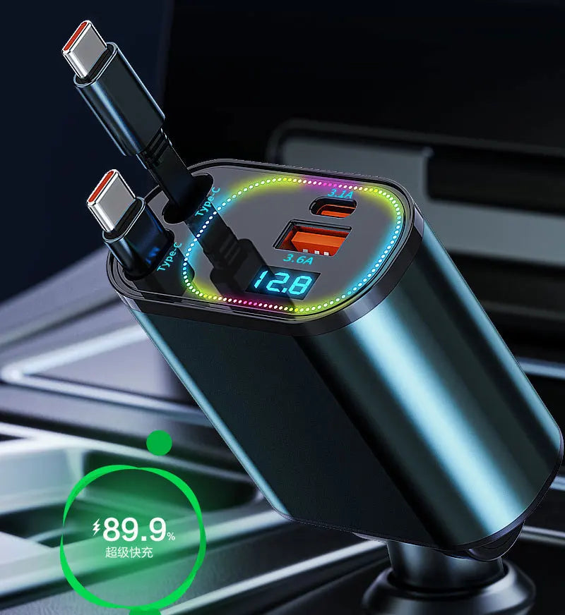 Retractable Car Charger: Car Accessories with Starlight in Car Roof, Car Chargers USB C, Fast Charging Adapter & Dual Charge Por